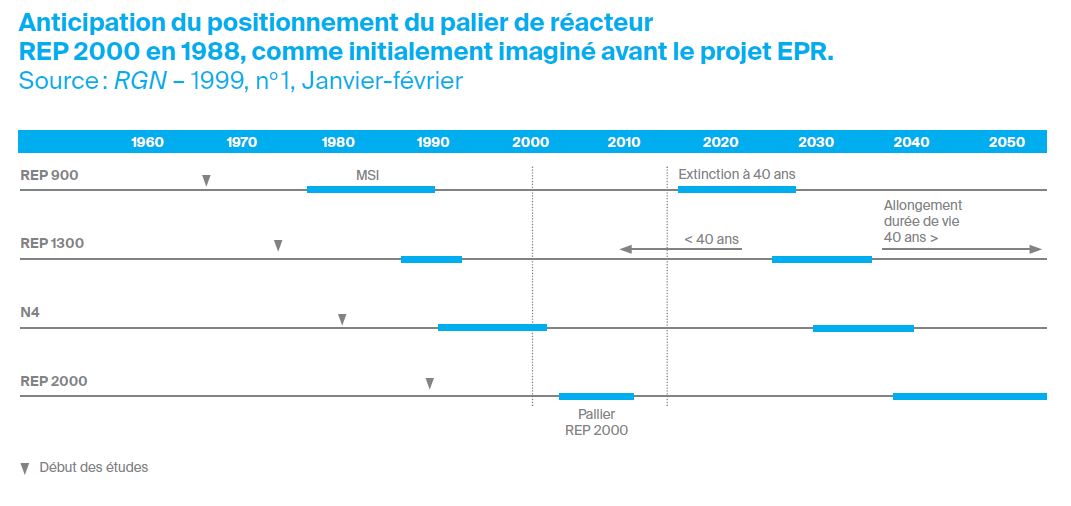 En 1986, EDF présente une première esquisse de son réacteur du futur, le REP 2000 (pour « Réacteur à eau pressurisée de l’an 2000 »). Si ses caractéristiques sont encore à préciser, EDF l’imagine « évolutionnaire » et non « révolutionnaire ». Il s’agit d’optimiser et d’améliorer les paliers de réacteurs précédents avec des progrès sur la sûreté, sur la puissance du réacteur, sur les coûts de production ainsi que sur l’utilisation de l’uranium.