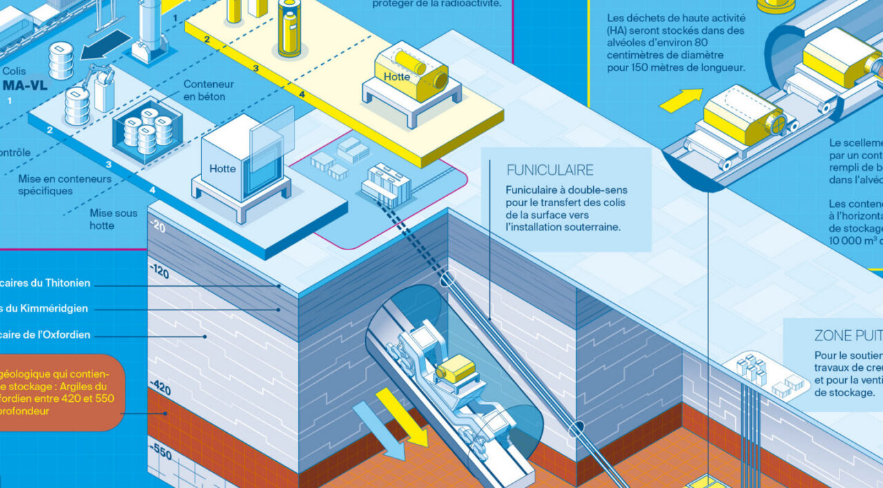 En raison des propriétés radiologiques différentes des deux types de déchets concernés par le stockage profond (MA-VL et HA), ceux-ci seront stockés dans des zones dédiées. L’exploitation du centre est prévue à l’horizon 2050.