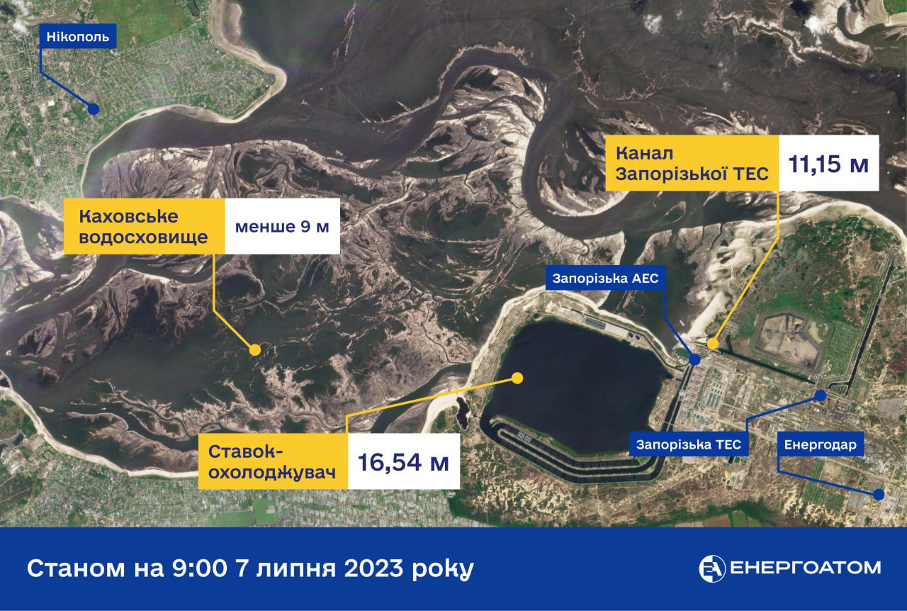 Dans un même communiqué, l’AIEA a fait un point sur la situation de l’approvisionnement en eau du réacteur, remis en question depuis la destruction du barrage de Kakhovka le 6 juin dernier. « (Les experts) ont visité la vanne d’isolement qui sépare le bassin de refroidissement de ce qui reste du réservoir de Kakhovka après la destruction du barrage en aval il y a un mois. La vanne a été renforcée par des contrepoids et du sable et il ne semble pas y avoir de fuite d’eau de l’étang », explique l’agence.