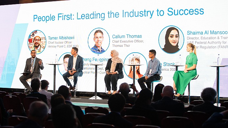 Shaima Al-Mansoori, directrice Enseignement et Formation de l’autorité de sûreté émiratie (FANR), a souligné que la similarité des enjeux appelait à étendre le recrutement à l’échelle mondiale que ce soit pour de jeunes diplômés de l’université, les métiers spécialisés dans le nucléaire ou des compétences en lien avec les technologies de réacteurs modulaires et avancés (SMR/AMR). Pour Callum Thomas, PDG du cabinet de recrutement Thomas Thor Associates, il est nécessaire de regarder différents publics et de s’adapter. Il souligne que les jeunes sont motivés par le but de l’entreprise et notamment par les sujets climatiques et de sécurité d’approvisionnement.