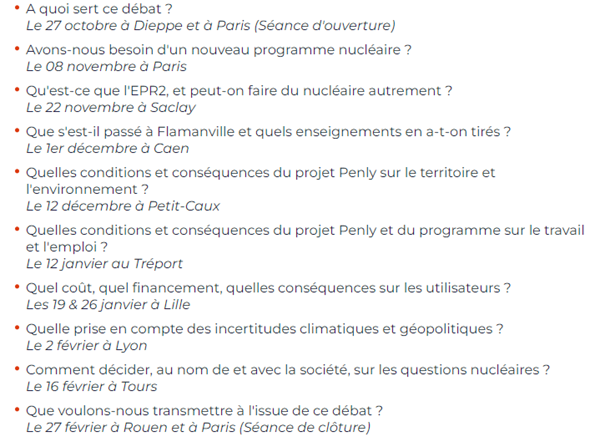Au-delà de ce programme, la Commission nationale du Débat public (CNDP) souhaite que les conclusions de ce débat viennent enrichir la future loi de programmation énergie climat (LPEC), qui doit être votée avant la fin juillet 2023 par le Parlement.