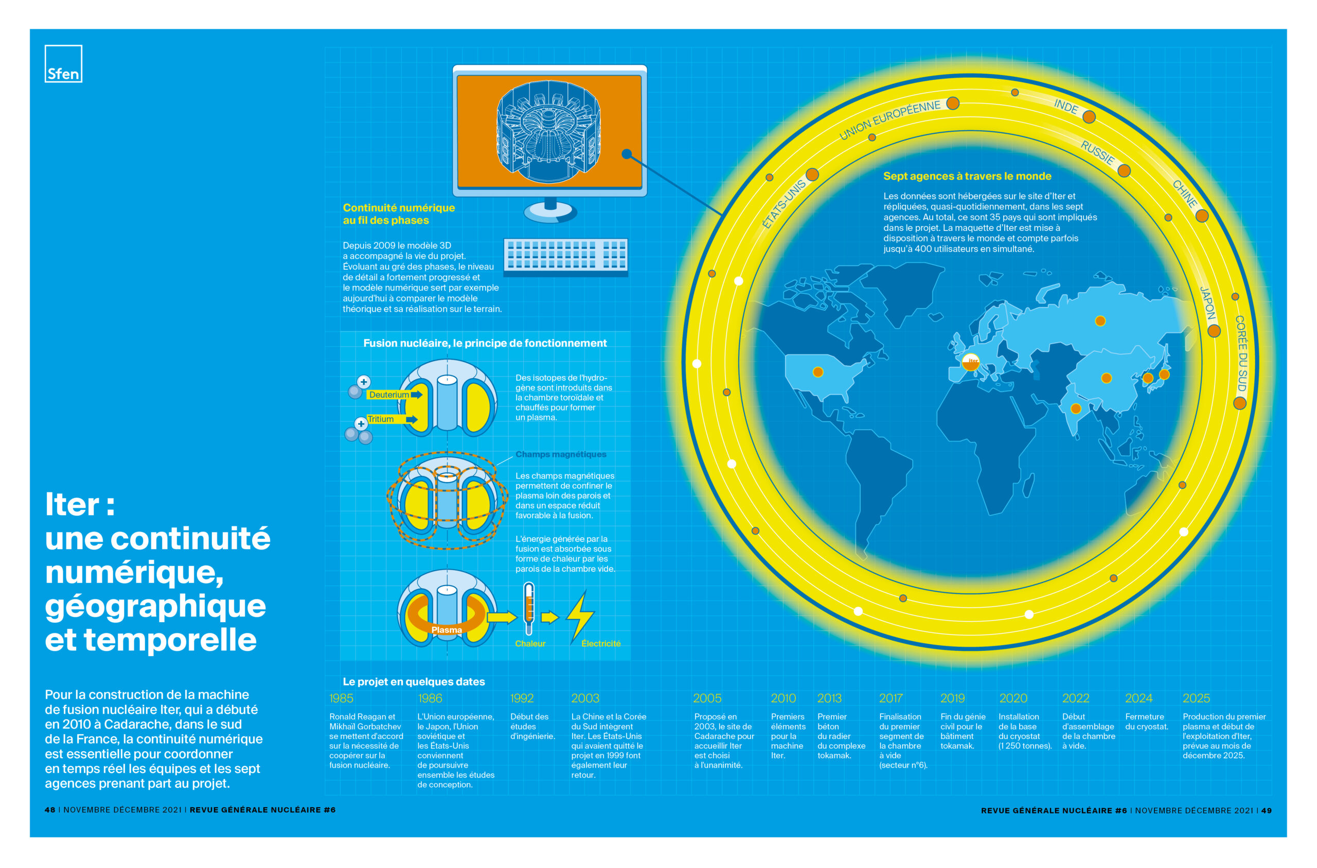 RGN > INFOGRAPHIE > Iter : une continuité numérique, géographique et temporelle Iter : une continuité numérique, géographique et temporelle Publié le 18 janvier 2022 - Mis à jour le 10 mai 2022 Infographie I © Sfen I Iter : une continuité numérique, géographique et temporelle Découvrez aussi ... Fusion nucléaire : les deux voies possibles de confinement du plasma Publié le 30 octobre 2025 Fusion : le rythme des records s’accélère Publié le 30 octobre 2025 Nucléaire & chaleur : des réussites concrètes Publié le 25 octobre 2024