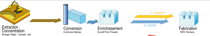 Pour bien comprendre les erreurs faites par Greenpeace, il est d’abord nécessaire de comprendre comment fonctionnent les marchés du combustible nucléaire. Deux à trois années sont nécessaires pour passer de l’extraction du minerai d’uranium, au chargement dans le réacteur d’une centrale nucléaire. Il y a plusieurs étapes intermédiaires : conversion, enrichissement et assemblage du combustible nucléaire