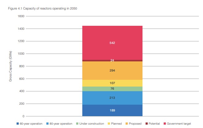 D’après le World Nuclear Outlook Report, publié par la World Nuclear Association en janvier 2026, si les objectifs nationaux sont respectés, la capacité nucléaire mondiale pourrait atteindre environ 1446 GW, dépassant l’objectif de tripler la capacité nucléaire mondiale d’ici 2050. Cette ambition, soit environ 1200 GW, avait été soutenue par 33 pays dans l’élan de la COP 28 sur le climat de 2023. L’atome est désormais considéré comme « élément central des stratégies en matière de climat et de sécurité énergétique » souligne ce rapport.