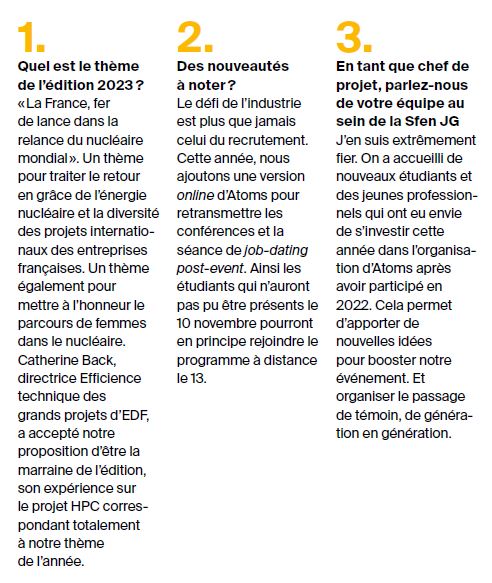 « Près de 200 jeunes professionnels et étudiants du nucléaire sont attendus. L’occasion pour chacun de développer son réseau professionnel et de trouver de nouvelles opportunités professionnelles. » + infos
