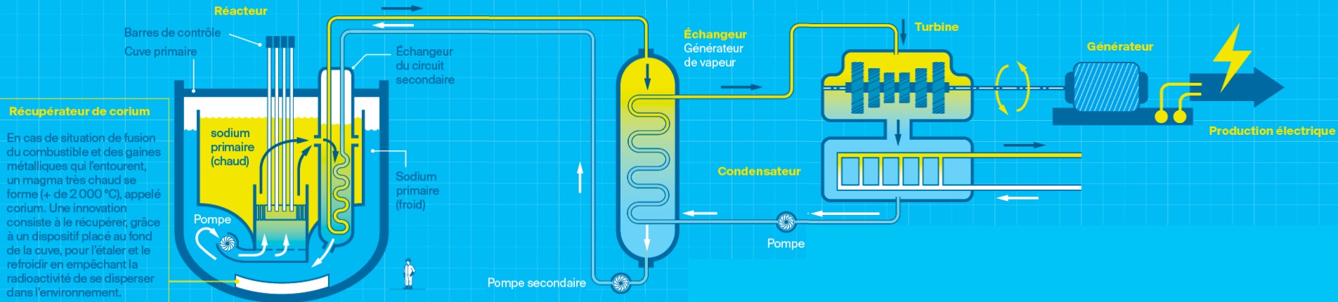 Les réacteurs nucléaires au sodium font partie des technologies de 4e génération, dont le caloporteur est du sodium liquide. Ces réacteurs fonctionnent avec des neutrons rapides et sont innovants pour plusieurs raisons : valorisation de toutes les matières fissiles et fertiles, applications multiples, incinération des actinides mineurs, etc.